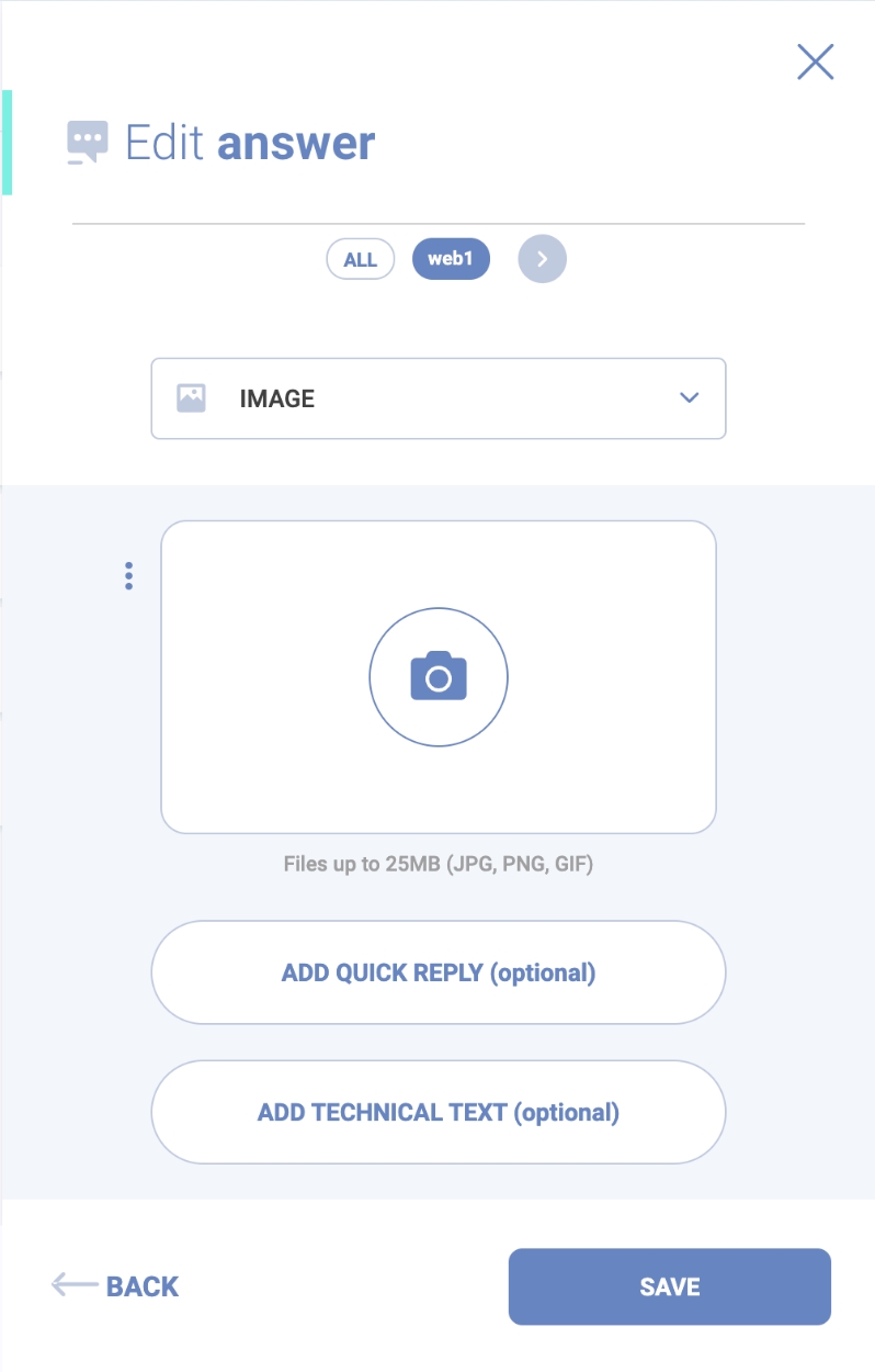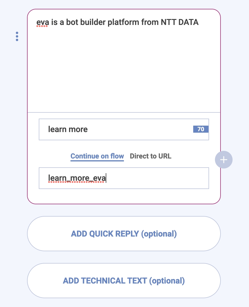 You can add buttons by enabling the quick reply option. You can also insert a technical text if the selected channel supports it.