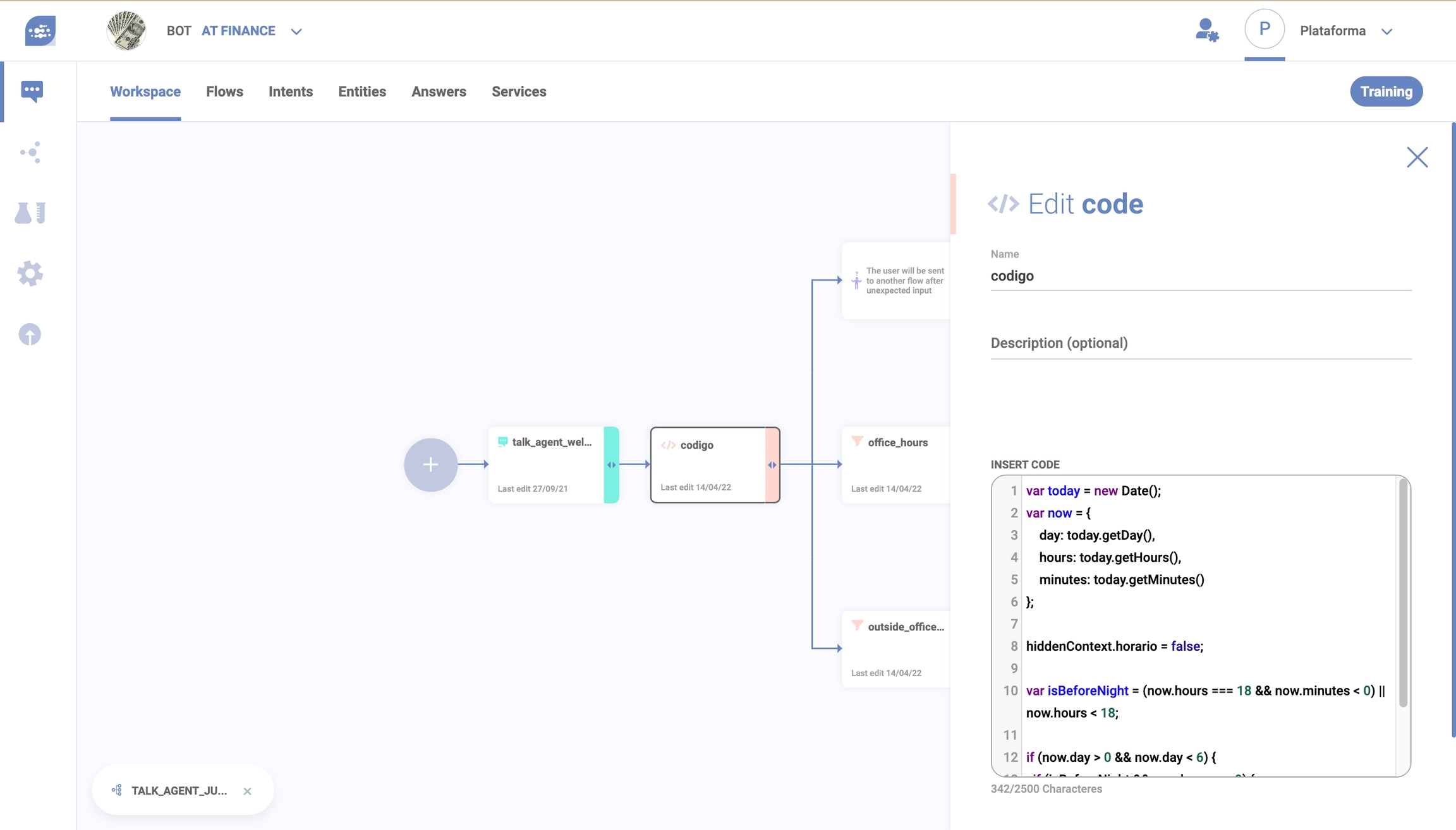 Code cell works with information available in Syntphony CAI’s system that doesn’t depend on APIs. It also allows creating variables, that's why it provides immense advantages in a virtual agent flow creation process.