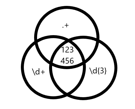The sequence 123456 suits the three different regular expressions, making the three overwrite each other.
