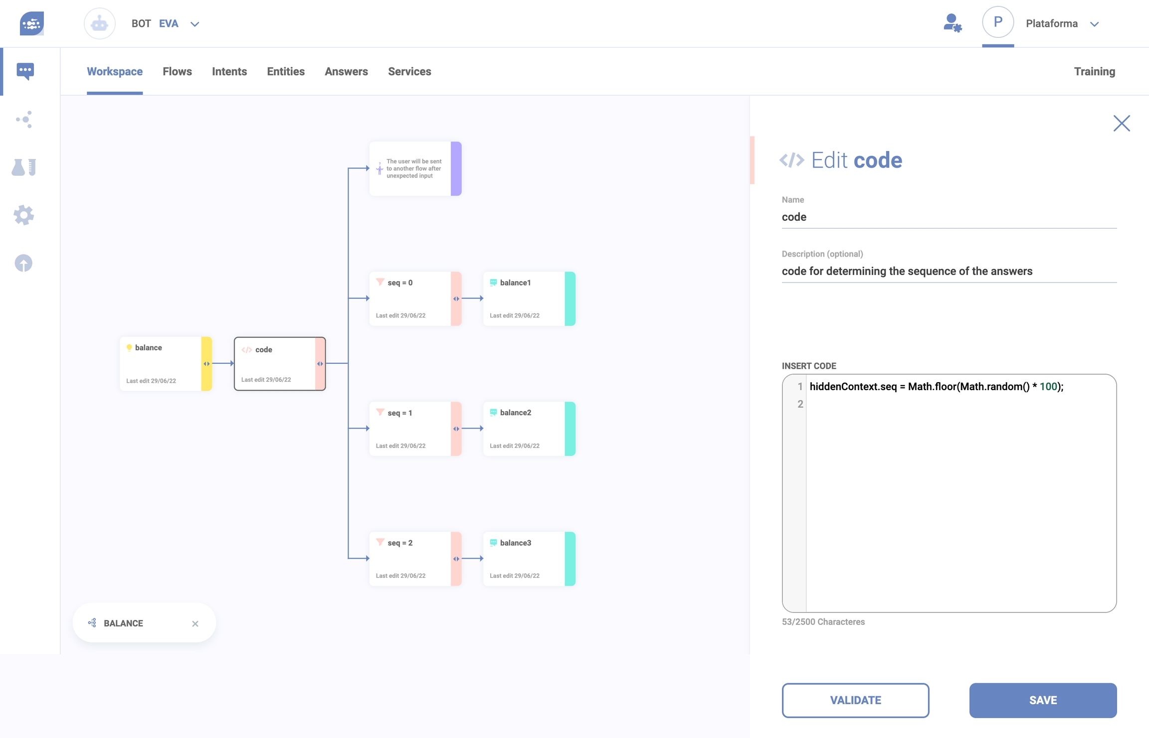 hiddenContext.seq = Math.floor(Math.random() * number of answers);For example, if three (3) random answers are predicted, the code will be:
