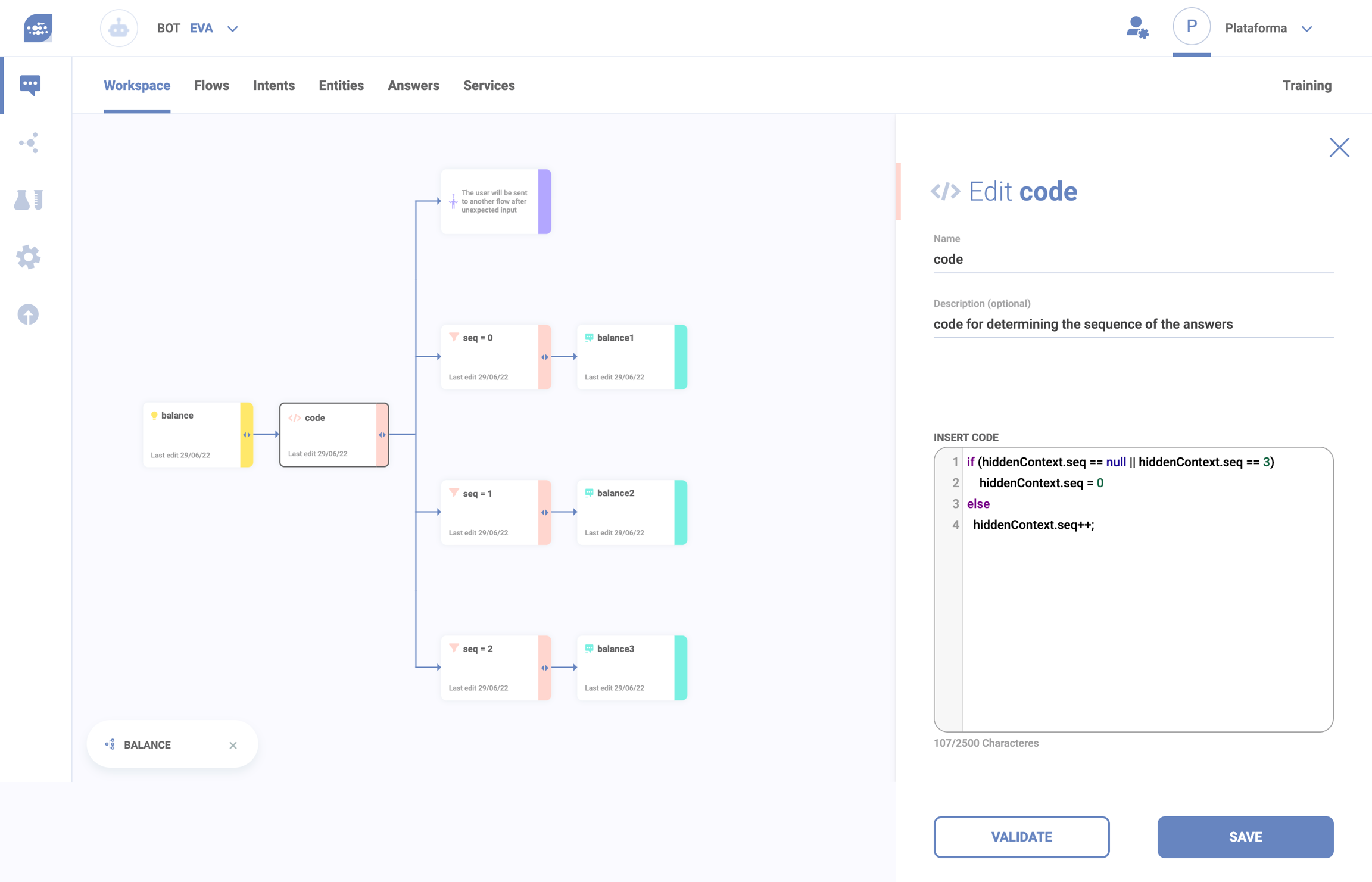 With Syntphony CAI, it is possible to predict in your flow different responses for the same Intent. The mechanism can be very useful in several use cases in dialogs.