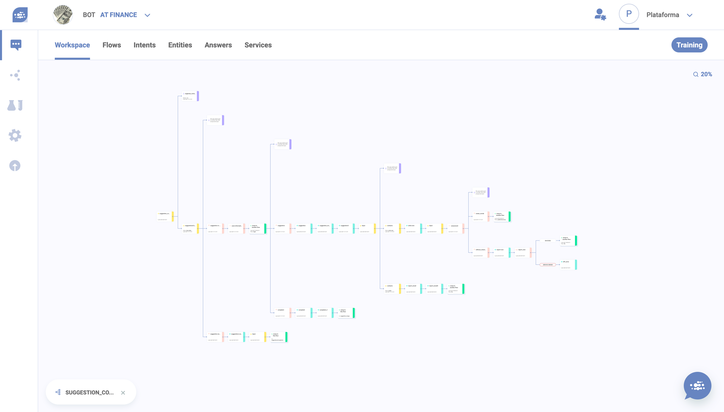 Repositories: store the flows and cells (Intents, Entities, Services, and Answers) created in the Workspace