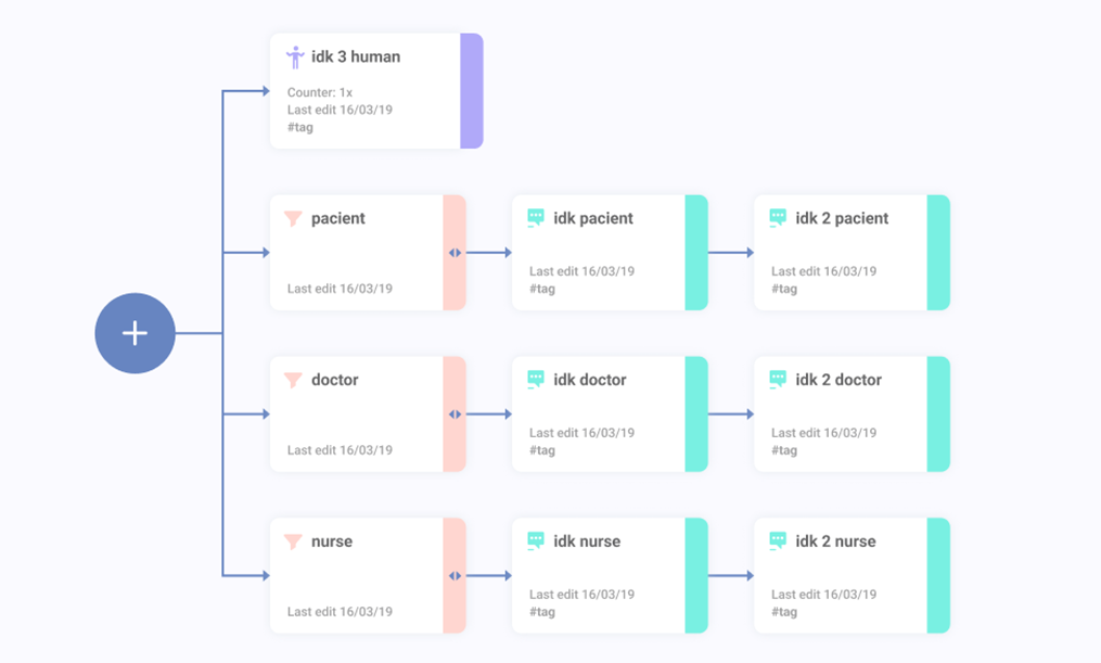 More robust option for building the dialog with all the conversational tools that Syntphony CAI has to offer. It must start with an Intent cell, whether it is new or from the list, in this cases Syntphony CAI searches on the repository for intents that had already been created.