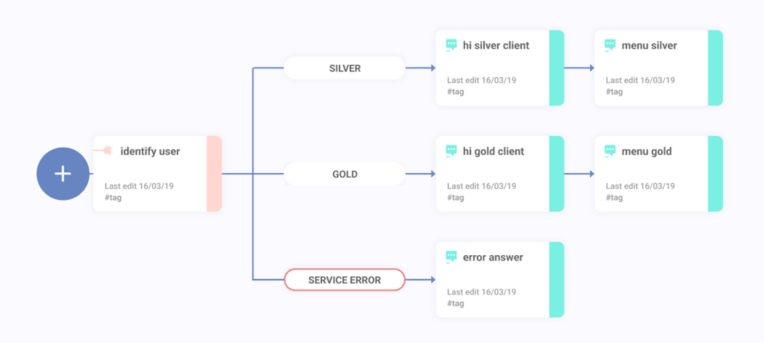 Now, if the channel doesn’t start the dialog and depends on the user input to start a conversation (like in the WhatsApp case), the welcome flow can aim to query, using a service cell, the customer's telephone number, identify its segment and disambiguate it to deliver different answers.