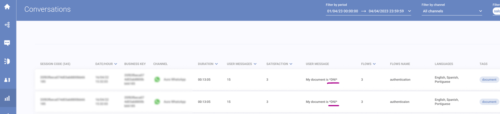 When masking mode is activated, data won’t be stored in Syntphony CAI nor will it be available in the Dashboards.
