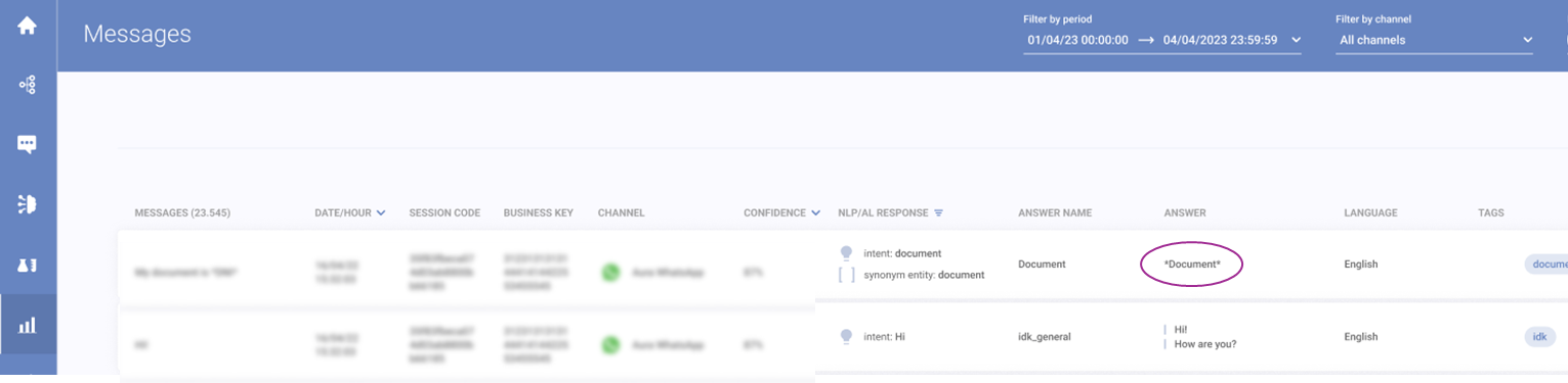 When masking an entity, all values contained within it will be masked. Masking is applied to the cognitive engine, Syntphony CAI's database, logs, dashboards, and dialogue simulator. The value contained in the user's message will be replaced with the entity's name. The rest of the user's interaction is preserved and won't be masked. Masking is available for synonym and pattern entities.